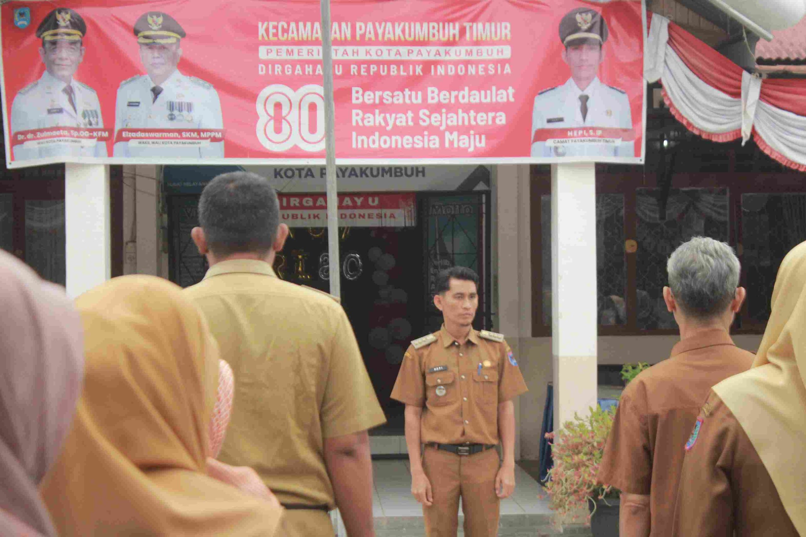 Apel pagi kali ini dipimpin langsung oleh Camat Payakumbuh Timur, Hepi, S.IP. Dengan penuh keteduhan, beliau menyampaikan amanat yang menyentuh hati seluruh peserta apel. Beliau mengingatkan bahwa aparatur pemerintah bukan hanya pelaksana tugas administrasi, tetapi juga sosok yang dilihat, ditiru, dan dijadikan teladan oleh masyarakat.